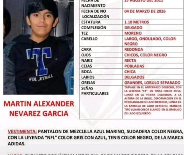 El menor Martín Alexander sigue desaparecido y sus familiares solicitaron dejar de victimizarlo al señalar su presunta localización con sujetos armados como lo reportaron autoridades de Sinaloa. Familiares del menor de 14 años recordaron que el niño, desapareció el 4 de marzo del 2026, pues la última vez que se le vio fue en la Colonia Octavio Paz, de la ciudad de Durango. Desmintieron que el jovencito haya sido localizado y la autoridad de Sinaloa…