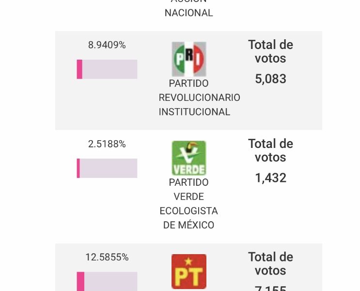 Las cifras anteriores es con el 43 por ciento de casillas contabilizadas, esto es 347 mesas receptoras de votos, lo que representa un avance importante de las 804 casillas que se instalaron en el municipio de Durango.