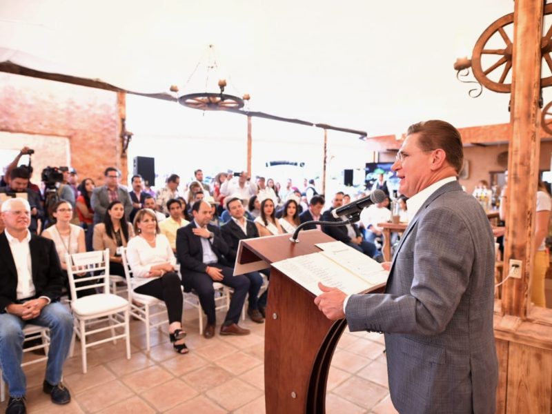 El mensaje del mandatario fue emitido después de que el presidente del patronato de los festejos de la ciudad, Miguel Castro Mayagoitia dio la bienvenida a las empresas participantes en la plaza, en donde se podrán degustar y adquirir botellas del preciado producto.