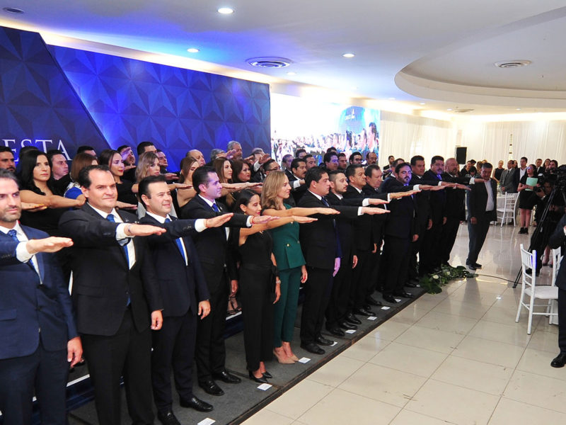 Son tiempos difíciles pero los retos se pueden convertir en oportunidades, y trabajando en unidad saldremos adelante, aseguró el gobernador José Rosas Aispuro Torres al tomar protesta del Consejo Directivo 2019- 2020 de la Cámara Nacional de Comercio (CANACO), junto al presidente de dicho organismo nacional, José Manuel López Campos.