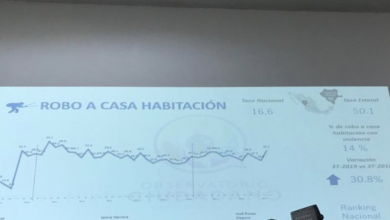 Jesús Elier Flores, titular del organismo, señaló la preocupación por la incidencia en el delito de robo en casa habitación, odio que también se presenta dificultad en materia de robo con violencia que representa el 14 por ciento de los robos de este tipo.