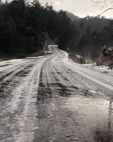 La Comisión Nacional del Agua también recomienda precaución en la rúa Durango-Mazatlán por la condición engelante de la lluvia sobre el pavimento.