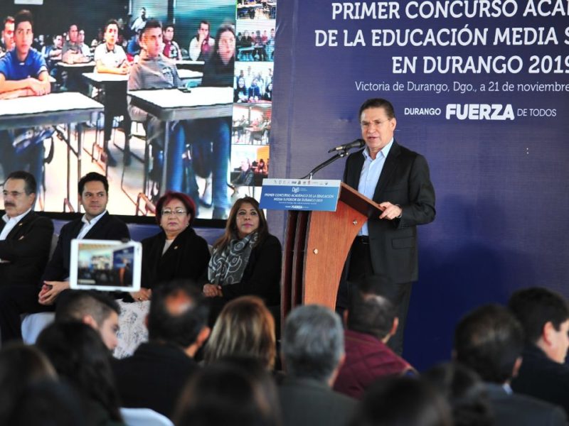 Con la participación de 20 mil alumnos en línea, el gobernador José Rosas Aispuro Torres, inauguró el Primer Concurso de Educación Media Superior 2019, que se realizará con 800 grupos de 320 planteles de diferentes municipios, con la finalidad de mejorar la calidad, convivencia y habilidades educativas, aprovechando las nuevas tecnologías.