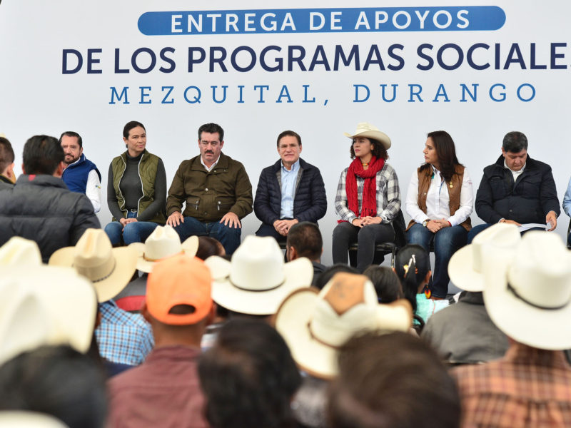 Seguimos mejorando la calidad de vida de todas las familias mediante los beneficios de 14 programas sociales desde el Gobierno del Estado, expresó el gobernador, José Rosas Aispuro Torres, al otorgar los nuevos apoyos en el municipio de Mezquital.