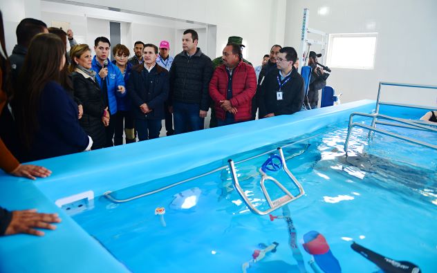 Santiago Papasquiaro, Dgo.- Los beneficiarios del Centro de Rehabilitación y Educación Especial (CREE) de Santiago Papasquiaro, recibirán atención personalizada y de calidad, indicó el gobernador José Rosas Aispuro Torres, al entregar el Tanque Terapéutico, que podrá atender hasta 60 pacientes diarios, tan solo en esta área.
