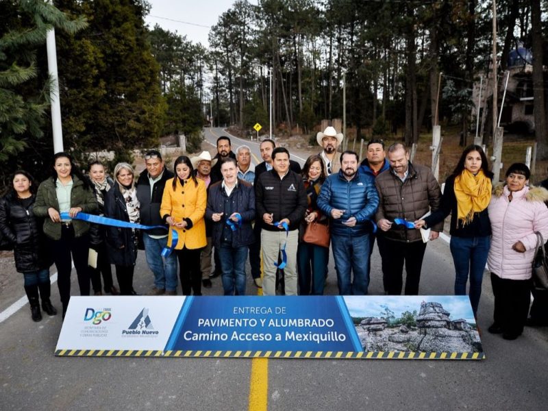 La Ciudad, Pueblo Nuevo, Dgo.- Con una inversión de seis millones de pesos, rehabilitamos el acceso al parque natural Mexiquillo, brindando a los visitantes mayor comodidad y a sus habitantes herramientas para seguir haciendo de este uno de los mejores sitios para visitar en Durango, destacó el gobernador José Rosas Aispuro Torres, al entregar obras de pavimentación y alumbrado público en dicho paraje.