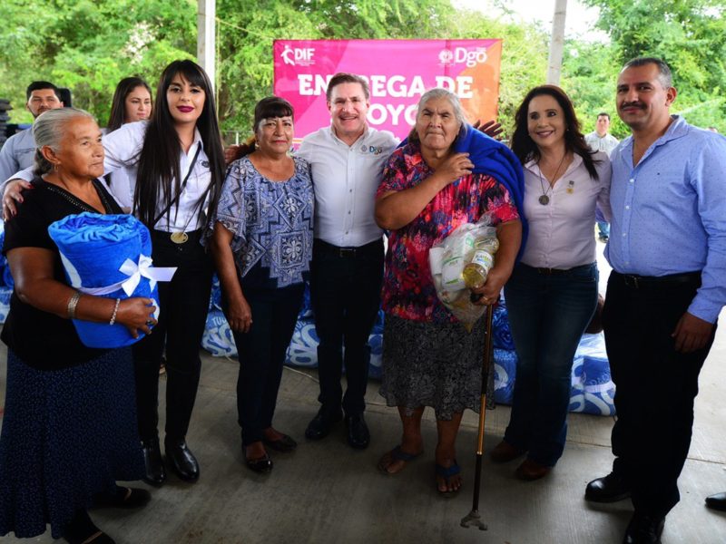 Durante la gira de trabajo por la comunidad de Los Remedios, Aispuro Torres, acompañado de la legisladora Federal, Martha Olivia García Vidaña y la diputada local, Karen Fernanda Pérez Herrera, otorgó a las familias vulnerables más de 2 mil apoyos invernales que incluyen colchonetas, cobertores y paquetes alimentarios, además de que, para los pequeños, se entregaron aguinaldos y juguetes.