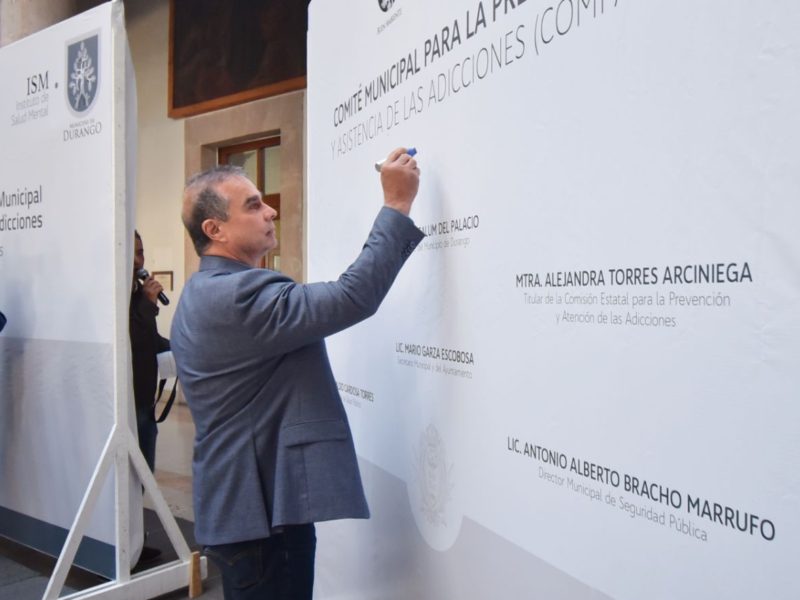 Inicia una labor conjunta entre las direcciones municipales y sociedad contra las adicciones que tanto afectan a las familias, destacó el Edil. Después rindió protesta junto a integrantes del Comité ante Alejandra Torres Arciniega, titular de la Comisión Estatal para Prevención y Atención de las Adicciones