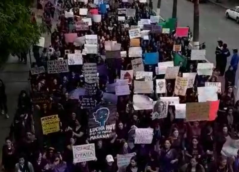 Mujeres duranguenses iniciaron la conmemoración del día internacional de la mujer con una marcha en donde se lanzaron consignas sobre el riesgo latente que existe en la seguridad de las féminas.