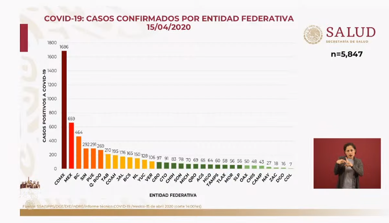 Hugo López Gatell, Subsecretario de Salud del Gobierno de la República mostró las gráficas en donde se colocó a Durango en en antepenúltimo lugar nacional en cuanto al número de casos positivos, ya que solo Colima reportó siete casos, que fue la cifra más baja, seguido por lo que sucede en el territorio duranguense en donde suman 16 casos.
