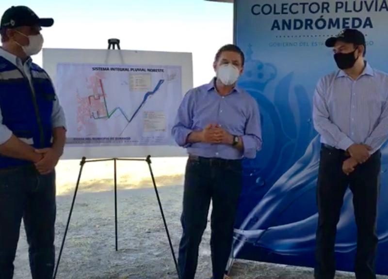 El colector pluvial Andrómeda con una inversión de 53 millones de pesos fue supervisado por el Gobernador José Aispuro Torres quien solicitó se destraben los recursos del Fondo Metropolitano del presente año pues hasta ahora se empiezan a utilizar las partidas del 2019.