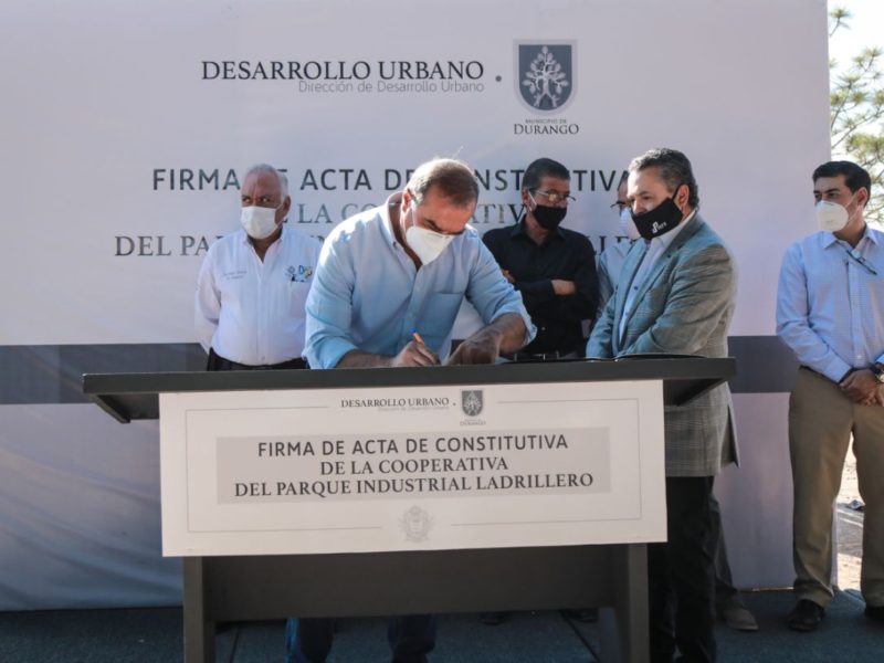 En la firma del acta constitutiva para crear la Cooperativa Parque Industrial Ladrillero del Norte, el alcalde Jorge Salum del Palacio reconoció el esfuerzo de empresarios y obrajeros del PIL, para sacar adelante esta actividad económica y su cadena productiva.