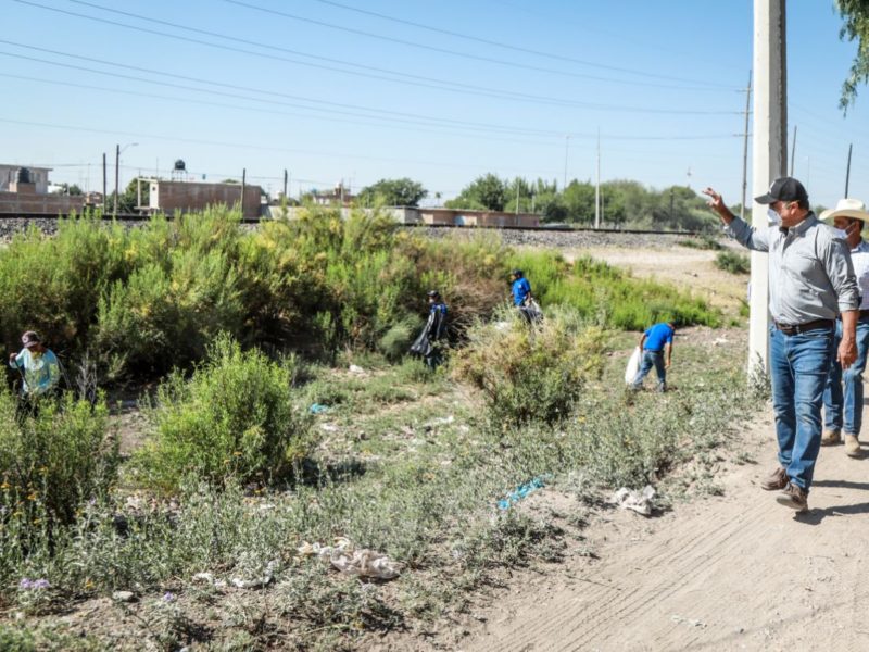 Salum del Palacio supervisó el mantenimiento y limpieza de canales y arroyos urbanos que llevan a cabo las direcciones de Servicios Públicos, Medio Ambiente, Protección Civil y Desarrollo Rural, ahora en 1.5 kilómetros de este canal que cruza por el poblado 5 de Mayo y desemboca en el río La Sauceda.