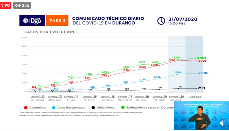 "La Mayoría de las Librerías en Durango Están Cerradas"En las últimas 24 horas, Durango reportó cinco decesos por Covid-19 por lo que acumula 299 decesos, así como 3 mil 721 personas contagiadas con el nuevo coronavirus, ya que este viernes se reportaron 80 nuevos casos confirmados. Fernando Ríos, titular de comunicación de la Secretaría de Salud dio lectura al comunicado de la dependencia en donde se precisó que de los cinco decesos cuatro son hombres y uno más mujer, de los cuales cuatro…