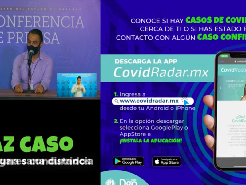 El funcionario invitó a la población duranguense a bajar la aplicación que se puede encontrar en google y en iOS para poder tener en su teléfono un servicio que puede advertir al usuario sobre la presencia de personas que porten el virus del Covid-19.
