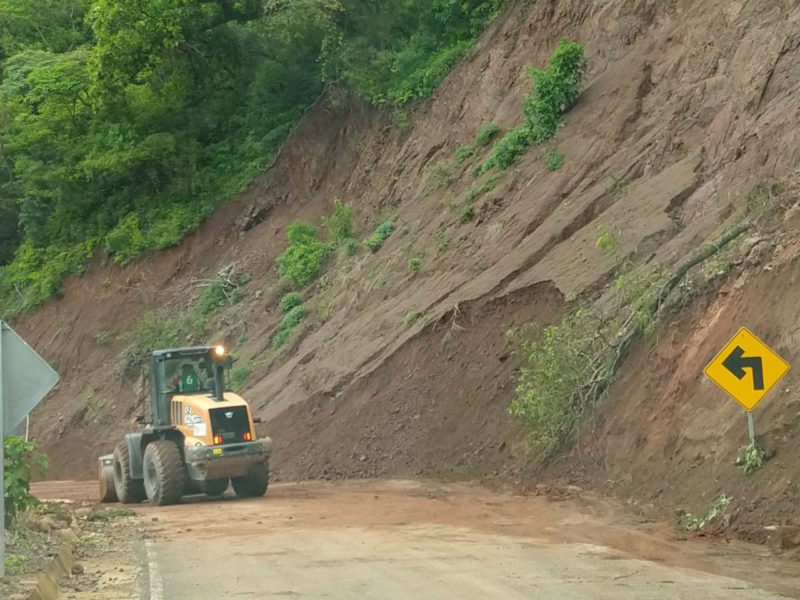 "Continúa Gobierno Estatal atención a damnificados por lluvias"La carretera Durango-Culiacán, en su tramo Los Herrera-Topia sufrió un fuerte derrumbe ante el resblandecimiento de los cerros debido a las intensas precipitaciones pluviales que se han registrado, por lo que este día con maquinaria se realizó el retiro del material. La Secretaría de Comunicaciones y Obras Públicas envió al lugar maquinaria para poder retirar piedras y tierra que invadieron la carretera a la altura del kilómetro 244+400, que se prolongó hasta el kilómetro 257+280,…