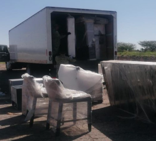 En un comunicado la Sedena informó que una revisión de rutina a un vehículo que transportaba muebles procedente de Mazatlán, Sinaloa con destino a Reynosa, Tamaulipas se aseguró 4 mil 500 kilogramos de hierba verde similar a la marihuana, en 900 paquetes confeccionados con cinta café, ocultos entre la carga del vehículo.