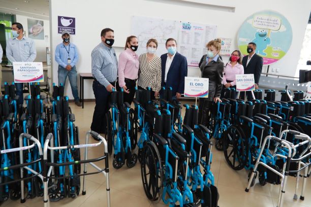 En Durango, trabajamos en unidad y coordinación con los municipios, para que la gente mejore su calidad de vida, expresó el gobernador José Rosas Aispuro Torres, al entregar junto a la presidenta del DIF Estatal, Elvira Barrantes y en conjunto con la Fundación Telmex – Telcel, mil 600 sillas de ruedas y aparatos funcionales para 19 muncipios.