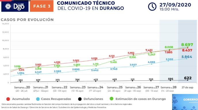 "Cumple Durango 48 Horas Sin Decesos por Covid-19; Confirman 124 Casos."Mes: septiembre 2020