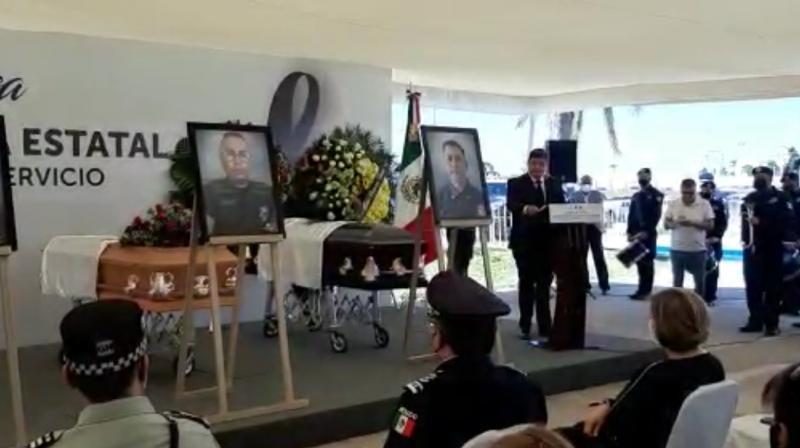 En la ceremonia luctuosa realizada en la Secretaría estuvo presente la Fiscal General del Estado, Ruth Medina Alemán, además del comisario de la Guardia Nacional, el coronel Francisco Javier Moreno.