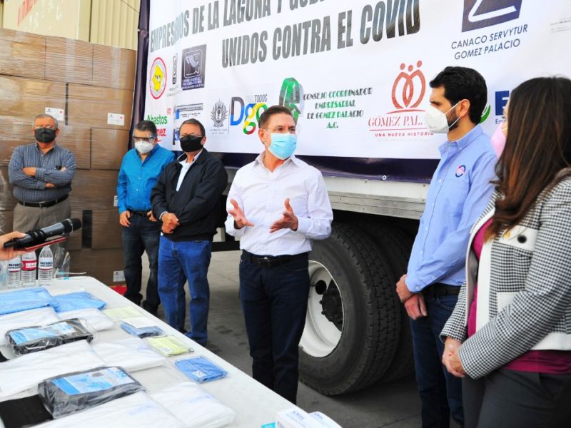 Con la consigna de “No nos vencerá la adversidad”, empresarios de La Laguna cerraron filas con el Gobierno del Estado de Durango para unir esfuerzos y combatir al COVID-19, donde entregaron al gobernador José Rosas Aispuro, una importante donación de insumos médicos para el sector salud de esta región por