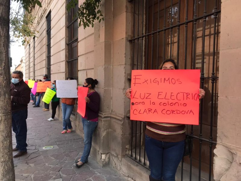 Habitantes de la colonia Clara Córdoba Morán se manifiestan en el Palacio Municipal para pedir servicios básicos como luz eléctrica, ya que a un año la petición no ha tenido respuesta.