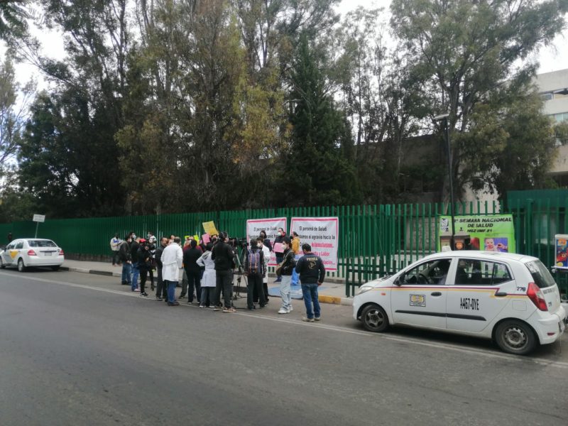 Un grupo de médicos del IMSS, encabezados por Gabriel Torres, protestó en el exterior de las oficinas del Instituto Mexicano del Seguro Social su inconformidad en torno al trato y los errores cometidos desde la Fiscalía General del Estado hacia su compañera Azucena.