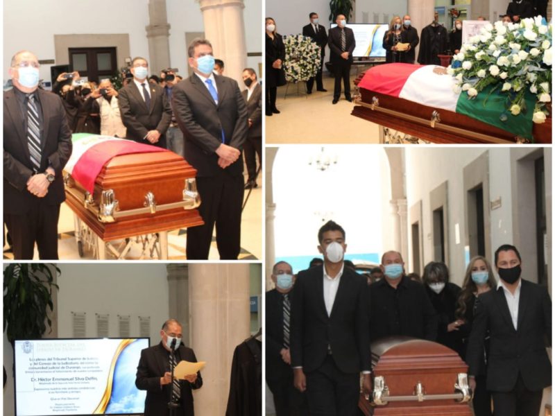 Luego del deceso magistrado Héctor Emmanuel Silva Delfín, el Poder Judicial de Durango rindió homenaje póstumo de cuerpo presente; ahí estuvo presente la hermana del hoy occiso y exdelegada del IMSS en Durango.
