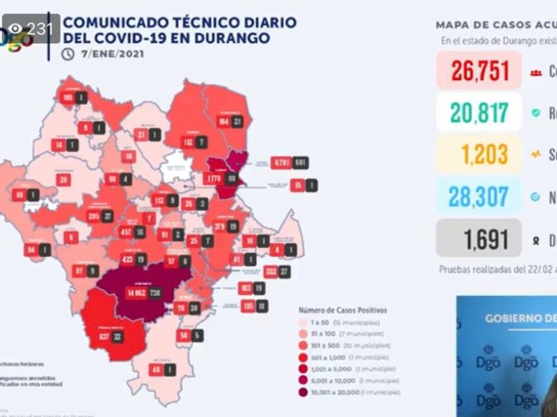 Además, de los 101 nuevos casos reportados este día, 57 corresponde a mujeres y 44 a hombres, de los que en 52 casos tienen residencia en Durango, 16 en Gómez Palacio, 12 en Canatlán, seis en Santa Clara, en tanto que Mapimí, Cuencamé y San Juan Del Río reportaron tres casos por demarcación, además hubo dos casos Lerdo y Rodeo.