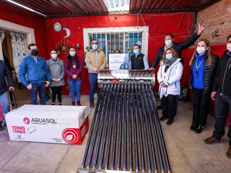 Con el Gobierno del Estado, en el Municipio se están generando más resultados, que alcanzan principalmente a las familias de escasos recursos, como muestra son estos calentadores solares en esta colonia Las Palmas, destacó el Alcalde capitalino.