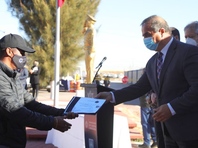 Bracho Marrufo agregó que los nuevos agentes tienen todas sus técnicas, materias y exámenes de control y confianza aprobadas, estuvieron internados en el ISSPE para recibir capacitación de formación inicial en el marco legal del Artículo 21 constitucional sobre capacitación en derechos humanos.