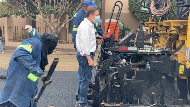 Supervisa Gobernador Obras de Mantenimiento de Pavimento en Jardines de Durango.