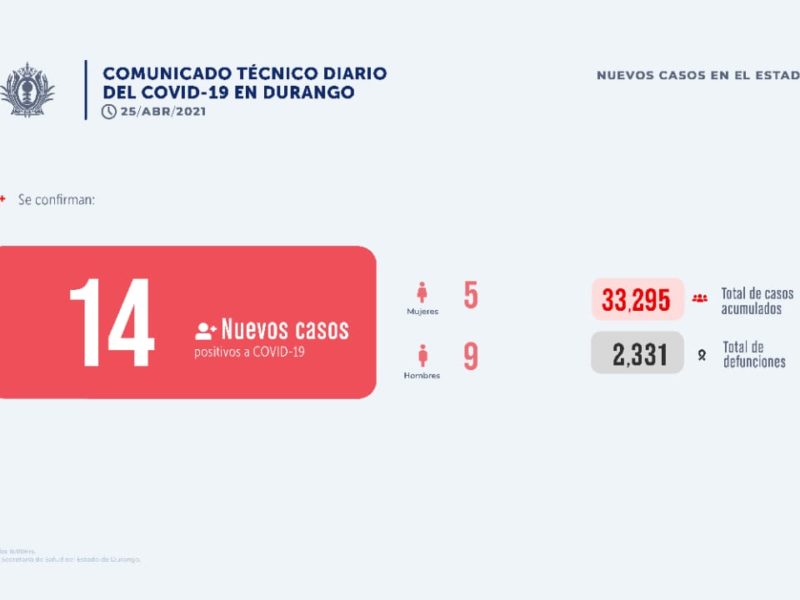 Éste domingo se confirmaron 14 nuevos casos de COVID-19, de los cuales cinco son mujeres y nueve son hombres y estos residen en siete casos en Pueblo nuevo, cuatro en Durango así como un caso en los siguientes municipios: y seguido Cuenca, El Oro y Santa Clara.