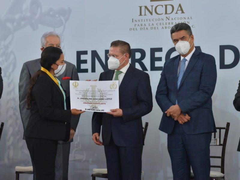 En el marco de la conmemoración del Día del Abogado, también fue reconocido con la Presea Manuel Cresencio Rejón, el ex gobernador, Maximiliano Silerio Esparza y el titular del TSJ, mientras que el Secretario General de Gobierno del Estado, fue distinguido con un reconocimiento a su mérito en Administración Pública.