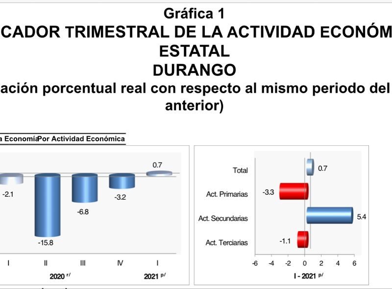 "Hay Escuelas Vandalizadas que no Podrían Regresar a Clases Presenciales"Durango, junto con otras siete entidades del país, logró crecer en el primer trimestre del año en el Indicador Trimestral de la Actividad Económica Estatal, ITAEE, al alcanzar un 0.7 por ciento impulsado fuertemente por las actividades secundarias como es la minería, construcción e industria manufacturera. De esa manera Durango, junto con Baja California, Chiapas, Aguascalientes, Tabasco, Oaxaca, Coahuila y Jalisco fueron las únicas entidades del país en reportar crecimiento, mientras que las restantes 24…