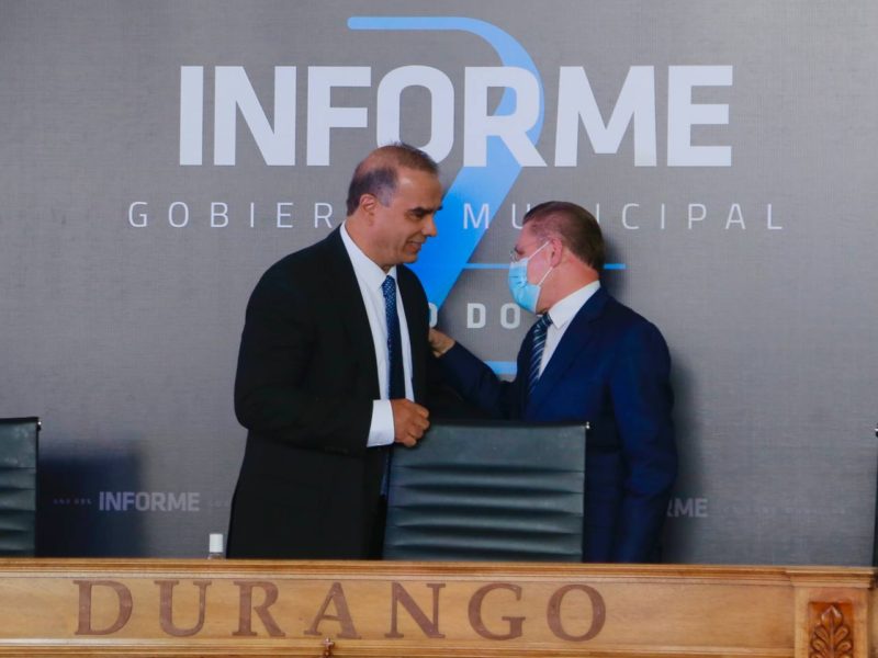 El Presidente Municipal Jorge Salum del Palacio presentó su Segundo Informe de Gobierno en sesión solemne ante los integrantes del Cabildo, en el que destacó que con el trabajo conjunto y respaldo del Gobernador José Rosas Aispuro Torres y regidores del Ayuntamiento se construye un mejor Durango, con obras, infraestructura y acciones de alto impacto social, porque Juntos Podemos.
