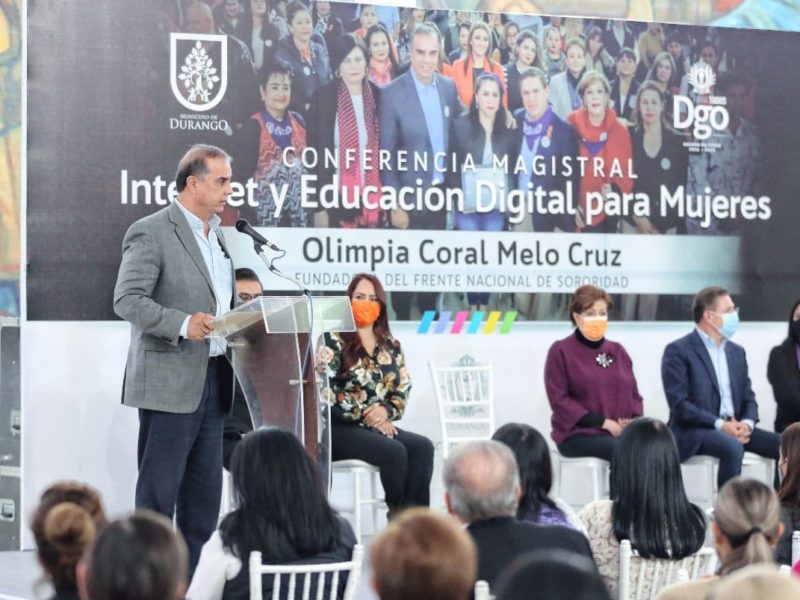 Con la realización de la conferencia magistral “Internet y educación digital para mujeres”, que impartió Olimpia Coral Melo Cruz, impulsora de la Ley Olimpia, el Gobernador José Rosas Aispuro Torres y el Presidente Municipal Jorge Salum del Palacio conmemoraron el Día Internacional de la No Violencia contra las Mujeres.