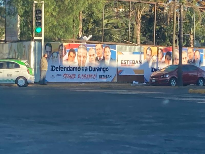 Propaganda calumniosa sin identificación del Instituto Nacional Electoral se colocó en el crucero de avenida Dolores del Río esquina con Predio Canoas en donde se muestra al Gobernador José Aispuro y el alcalde Jorge Salum junto con los candidatos a gobernador Esteban Villegas y José Antonio Ochoa. Bonifacio Herrera, ex dirigente estatal del PAN señaló que procede la denuncia de dicha propaganda y la solicitud de la medida cautelar para su retiro, ya que se…