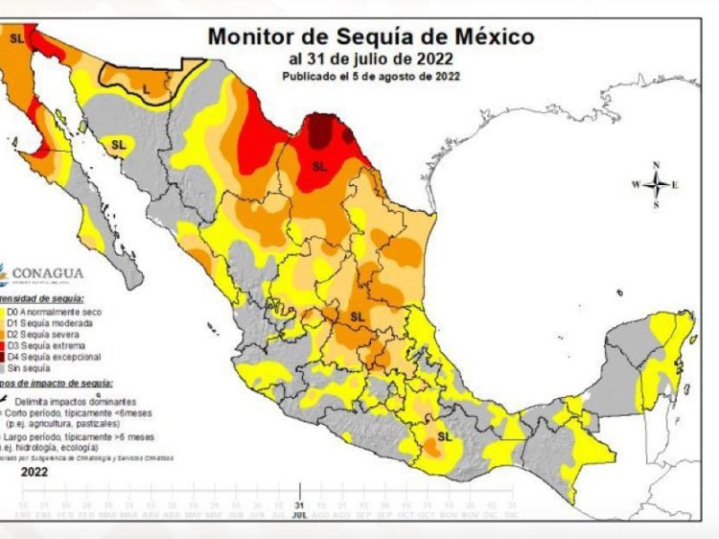 Hasta el 30 de junio pasado se reportó que el 59 por ciento del territorio estatal padecía algún grado de sequía, mientras que para el 31 de julio se reportó el 69.2 por ciento un incremento territorial del 10 por ciento.