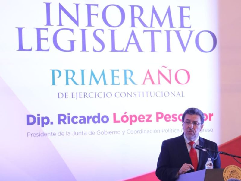 "Nombra Congreso del Estado Cuatro Magistrados; Destaca Ex Contralor del Estado."Al rendir su primer informe en la legislatura estatal, el diputado Ricardo López Pescador subrayó los acuerdos logrados en esa instancia, la cual logró superar una crisis previa a la instalación del nuevo congreso hace un año. El legislador hizo hincapié en la generación de consensos para lograr la aprobación de la ley de salud mental, así como reconocer el derecho a la paz. Al rendir su informe como diputado por el sexto distrito en…