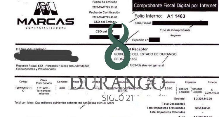 Durangos21 publicó en su oportunidad la información en base a una solicitud de información por lo que se recibieron las copias de las facturas que en su conjunto sumaron poco más de 5 millones de pesos para adquirir termómetros que fueron utilizados en el regreso a clases presencial.
