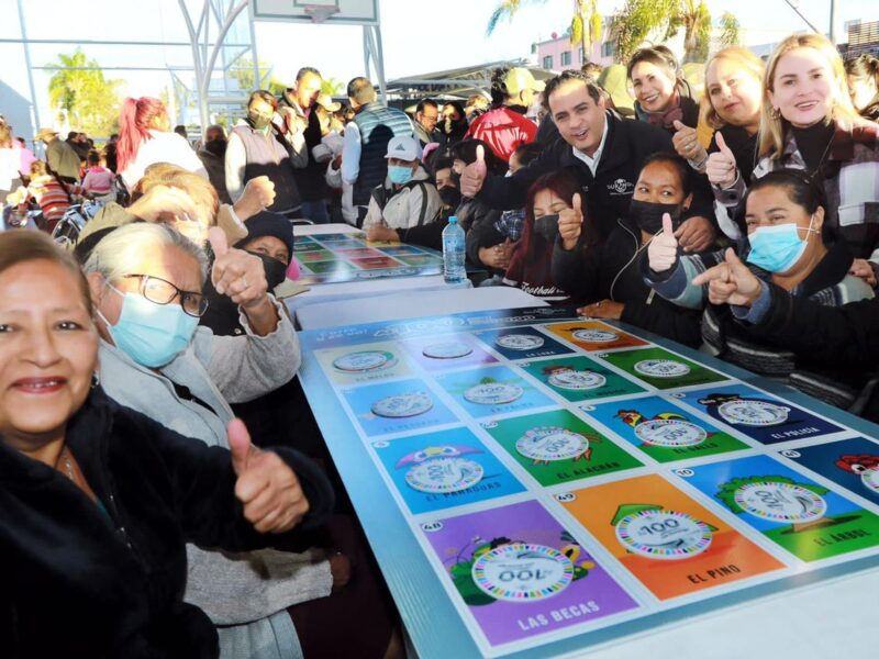 Familias de las colonias López Portillo, Morelos Sur, entre otras, aplaudieron en el juego de la lotería las acciones de los primeros 100 días de trabajo de Toño Ochoa, que garantizan la alimentación a la población infantil con los comedores comunitarios.