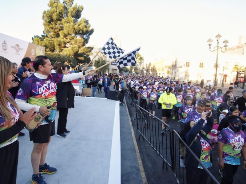 Unos mil corredores aceptaron el reto de Toño Ochoa y participaron en la carrera “Amo Correr” organizada para recaudar fondos y financiar el plan desarrollado para lograr otorgar alimento seguro a los niños duranguenses.
