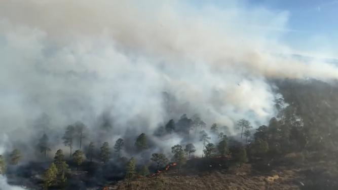 Hernández Espino subrayó el respaldo del gobernador Esteban Villegas, para contar en el área con una aeronave, que permite los desplazamientos rápidos del personal que se encuentra con trabajos para buscar sofocar el incendio forestal.