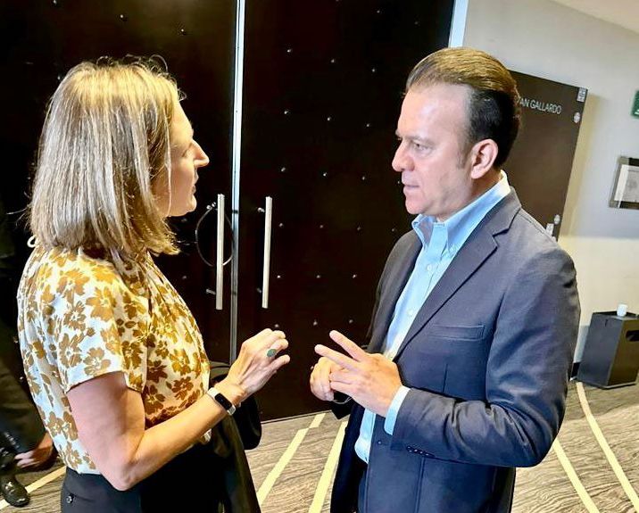 Un breve diálogo se sostuvo entre el gobernador Esteban Villegas Villarreal y la subsecretario de la oficina de asuntos hemisféricos occidentales del Departamento de Estado de Estados Unidos, Rachel Poynter.