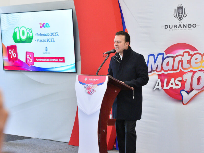 En apoyo a la economía de las familias, para que puedan regularizarse en el pago de sus contribuciones, el gobernador Esteban Villegas Villarreal, anunció el programa de descuentos en trámites de plaqueo y refrendo, así como licencias, cambio de propietario, incluso multas, entre otros, que comenzará a operar el próximo 15 de noviembre, como parte de la reconstrucción de Durango.