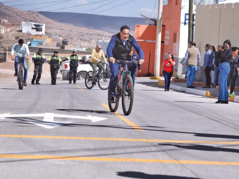 Familias de las colonias Juan Salazar y Ampliación Las Rosas recibieron contentas a Toño Ochoa, quien llegó en bicicleta para estrenar la avenida Juan Salazar y la calle Rosas recién pavimentadas, en los respectivos asentamientos.