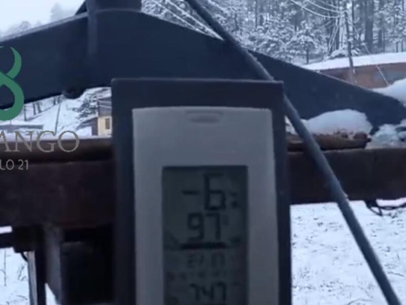 Jorge Reyes reportó durante la mañana de este sábado 17 de febrero la presencia de nieve de nueva cuenta en el vivero Coyotes que se encuentra próximo al poblado La Rosilla, lugar en el que el viernes los habitantes confirmaron a Durangos21 la caída de nieve.
