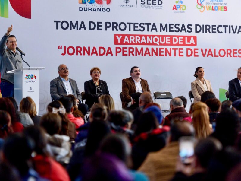En la toma de protesta de 315 mesas directivas de Padres de Familia se arranco la Jornada Permanente de Valores, en la cual se pretende eliminar barreras, generar puentes de comunicación con niñas, niños y jóvenes libres de pensamiento que puedan cumplir sueños, expresó el gobernador Esteban Villegas Villarreal.