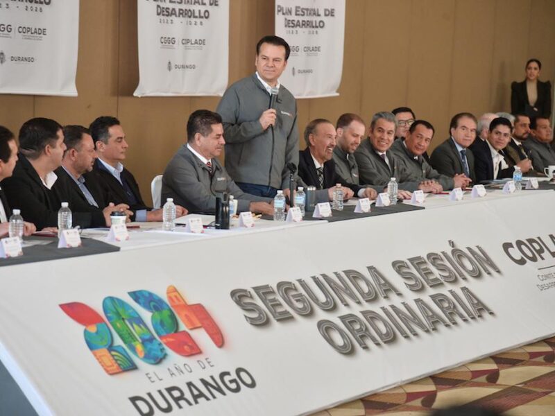 "Propone Pacheco Comisión Especial para Celebrar 200 Años de la Constitución"Presidentes municipales que participaron en la segunda sesión del Comité de planeación para el Desarrollo del Estado (COPLADE) reconocieron el anuncio realizado por el Gobernador Esteban Villegas sobre la instalación de empresas en 2024 al consolidarse como el año de Durango y sus municipios. “Estamos muy orgullosos de tener un Gobernador como él, y aquí están los hechos, con trabajo y no palabras, el 2024 es el año de Durango y se ve en los…
